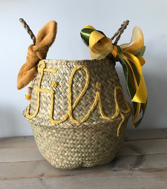 Voor het mooiste resultaat, wordt er een maximum van 7 letters aangeraden. De diameter van de mand is 30 cm, de hoogte 35 cm.