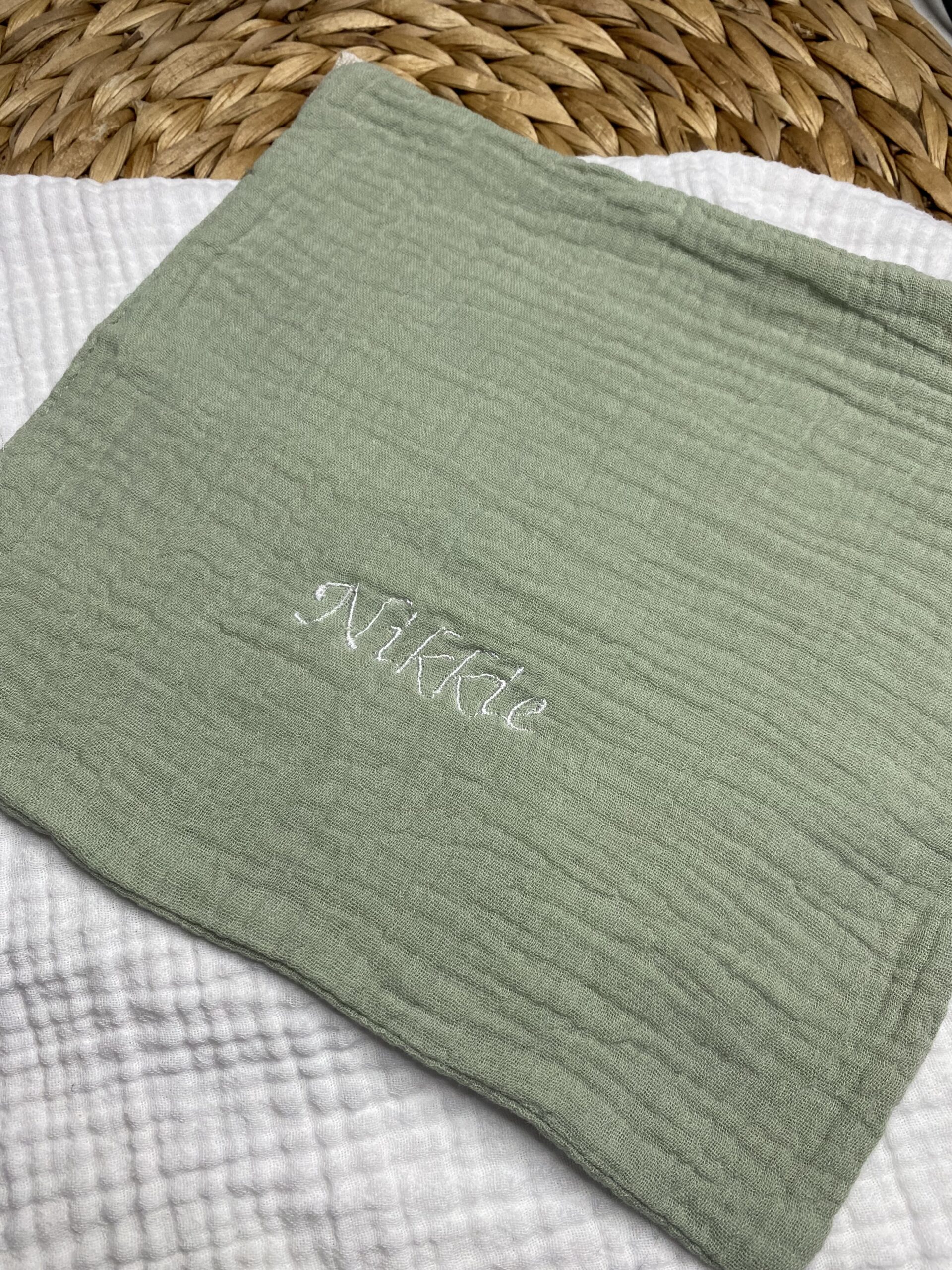 De afmetingen van het speendoekje zijn 23cm x 23cm. Je kunt kiezen uit strakke of sierlijke letters, en daarnaast kun je kiezen voor de gewenste kleur van de letters.