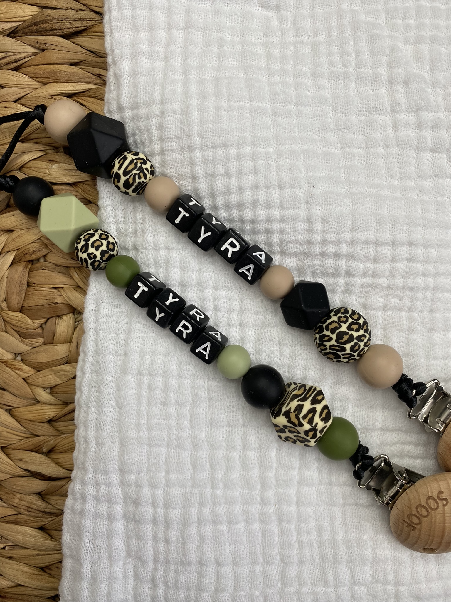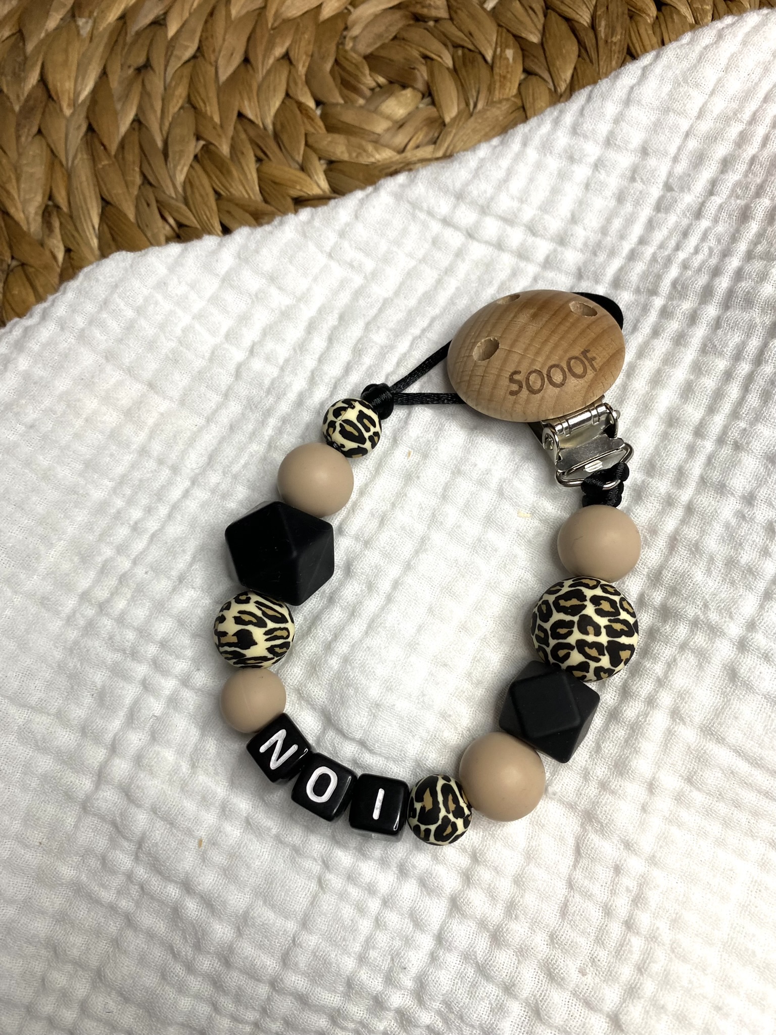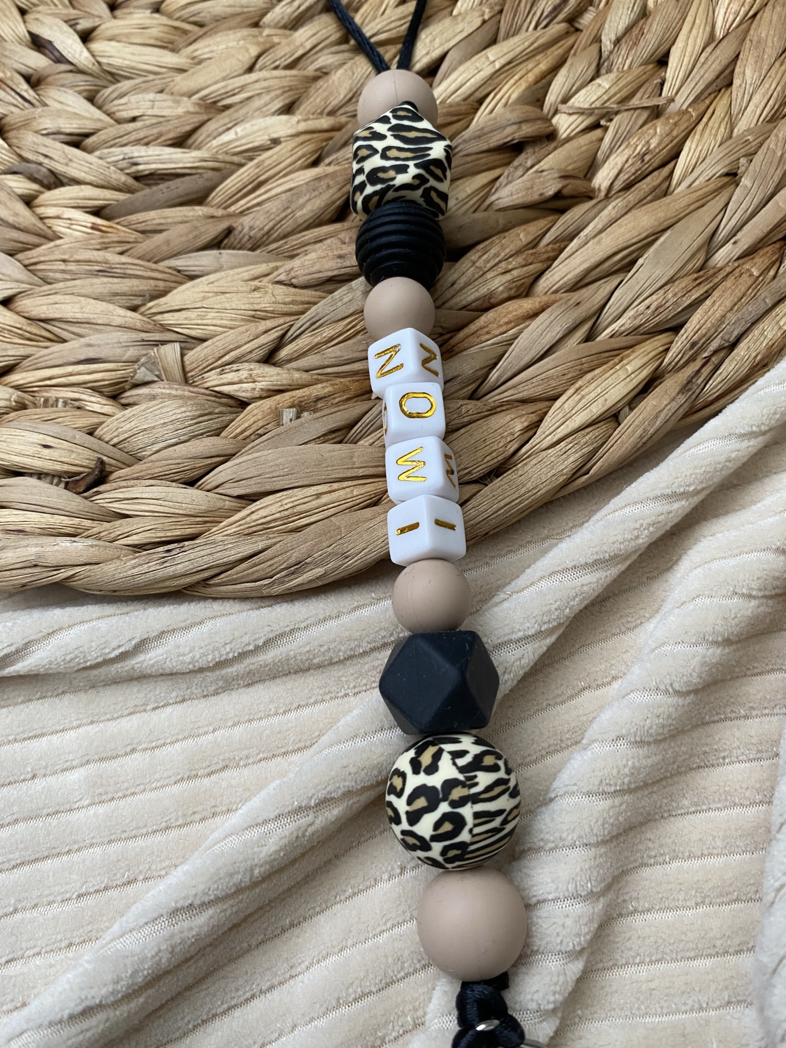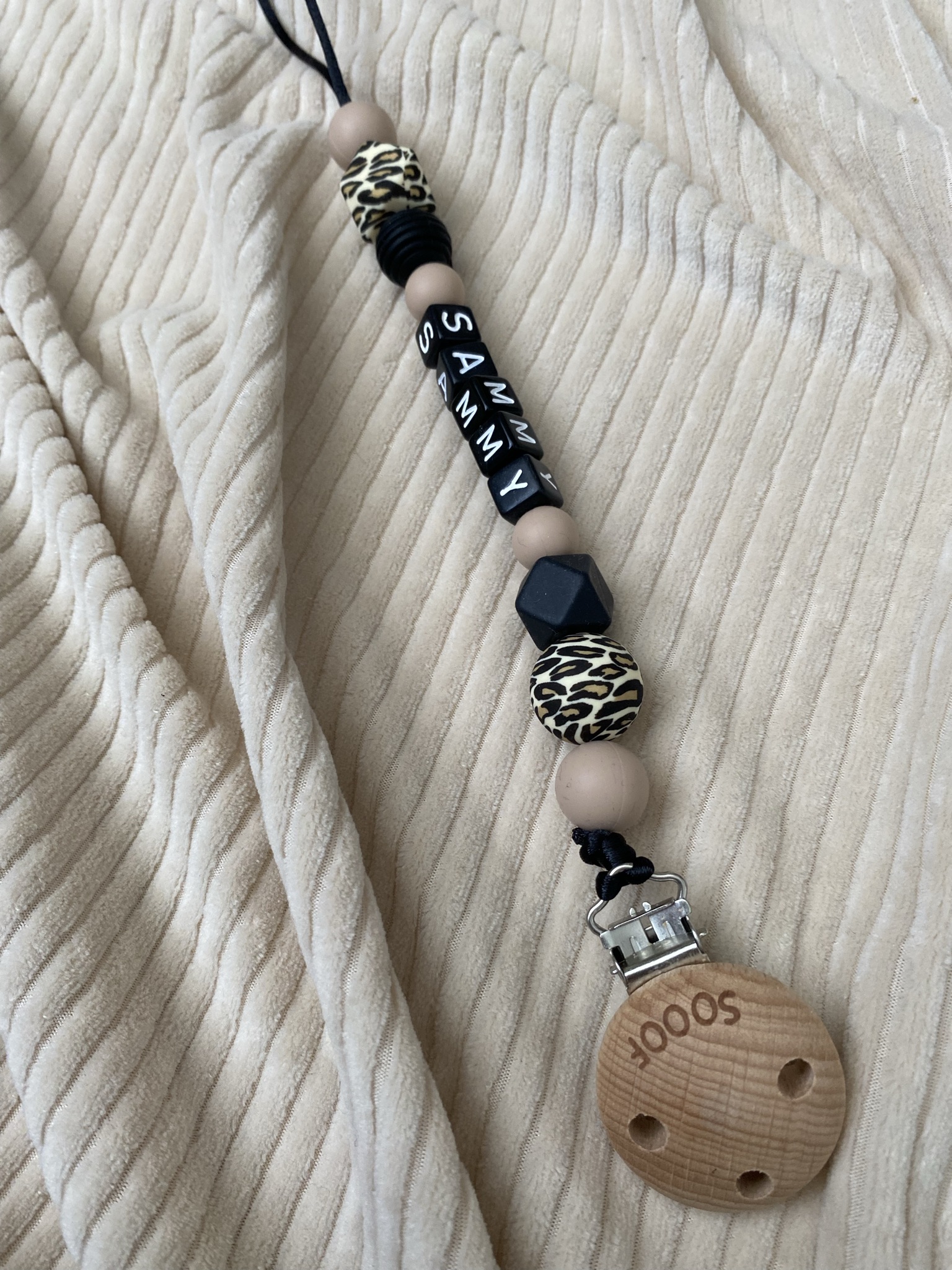 Let op: Indien de naam langer dan 6 letters is, worden er andere kralen uit het speenkoord verwijderd wegens de maximale toegestane lengte van 22 cm in verband met veiligheid. Helaas zijn speciale tekens nog geen mogelijkheid op de letterkralen.